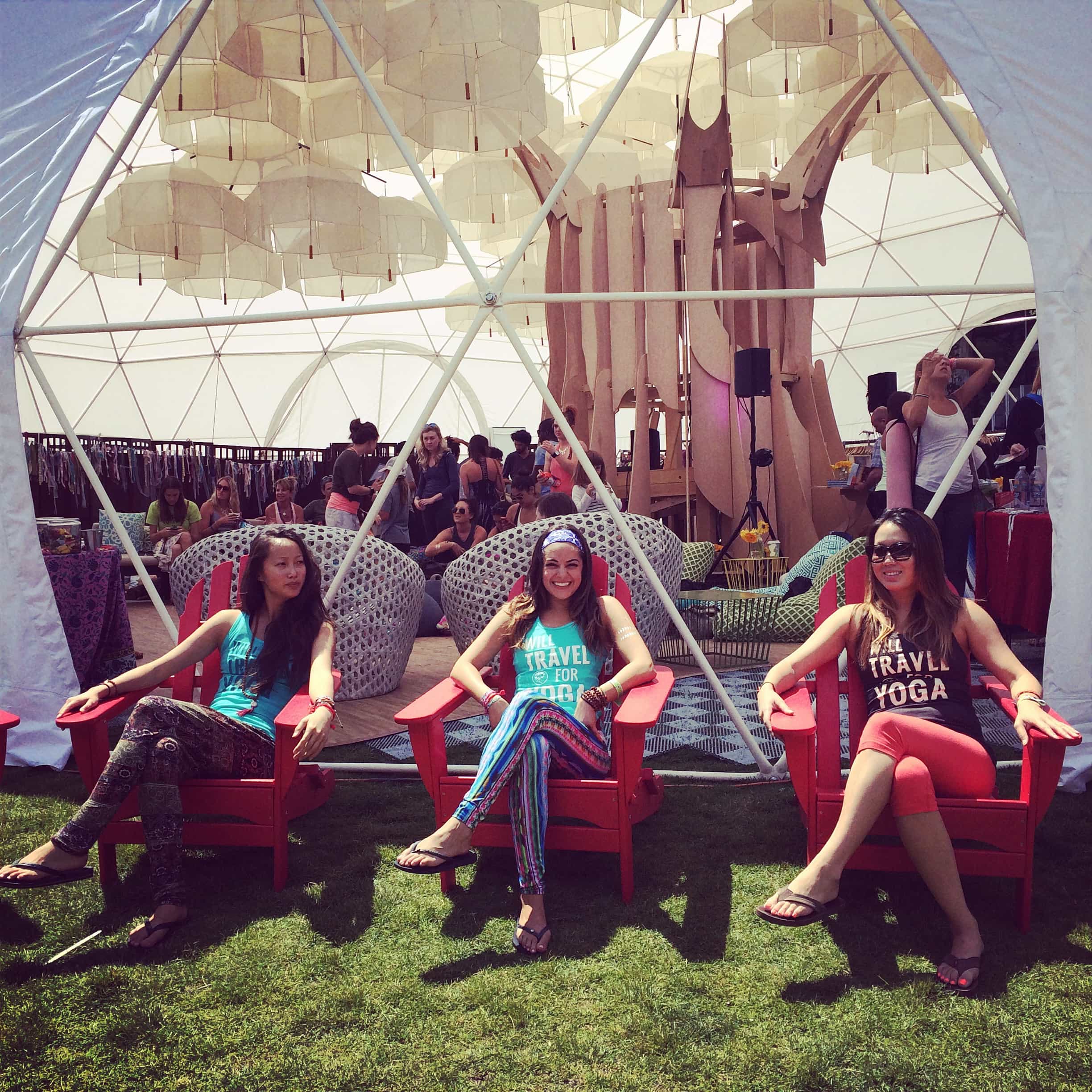 In the evening were concerts lined up in 2-3 different tents, with the whole Coachella feel, minus the massive drugs (although there were some of that going around, especially the ganja very openly) and some organic alcoholic beverages such as Tito’s who was a sponsor (the best!). The highlight of the weekend was the Saturday evening performance by MC Yogi who rapped & sang renditions of old songs and new, while literally jumping on a surfboard through the crowds from stage while doing Yoga poses. I love him. Such great energy.
